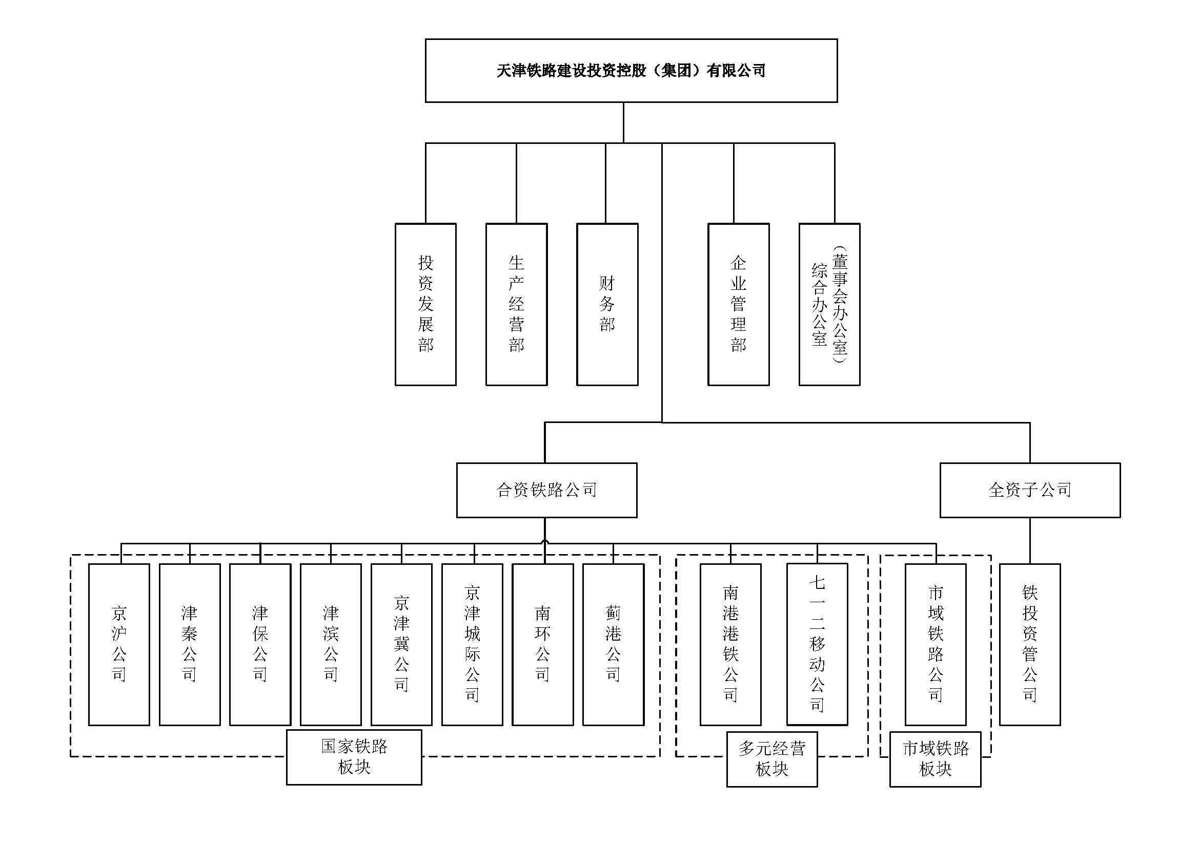 天津鐵路建設(shè)投資控股(集團)有限公司(以下簡稱鐵投集團)于2008年4月18日注冊成立,注冊資本52.5億元,專司天津市與原鐵道部合資建設(shè)鐵路股權(quán)出資與合作開發(fā),兼營鐵路貨運專線和房地產(chǎn)開發(fā)經(jīng)營等業(yè)務(wù)。先后承擔(dān)京滬高鐵、京津城際、南港鐵路專用線等15個出資合作項目,以及市政道路與津山鐵路、京滬聯(lián)絡(luò)線鐵路立交配套項目2項。持有京滬公司、京津冀公司等10家公司股權(quán),下屬全資子公司1個。