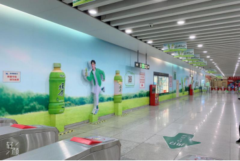 本次創(chuàng)意主題站廳的發(fā)布,選取自然清新的綠色作為主色調(diào),給人以清涼的舒適感。主題車站創(chuàng)意媒體特色一是對(duì)十二封燈箱進(jìn)行改造,設(shè)置專屬個(gè)性化、光影律動(dòng)的動(dòng)態(tài)效果,動(dòng)靜結(jié)合,更加醒目;特色二是將櫥窗概念與燈箱媒體結(jié)合,虛實(shí)相生,增強(qiáng)乘客的實(shí)體印象;特色三是將品牌綠茶瓶身等比例放大,制作到墻貼上,平面媒體的三維立體呈現(xiàn),展示效果更加震撼;另外一大特色,是采用H5互動(dòng)形式,乘客掃描二維碼便可在線制作人氣偶像專屬海報(bào),通過手機(jī)搖一搖,還能得到精美小禮品,提升媒體的互動(dòng)性。