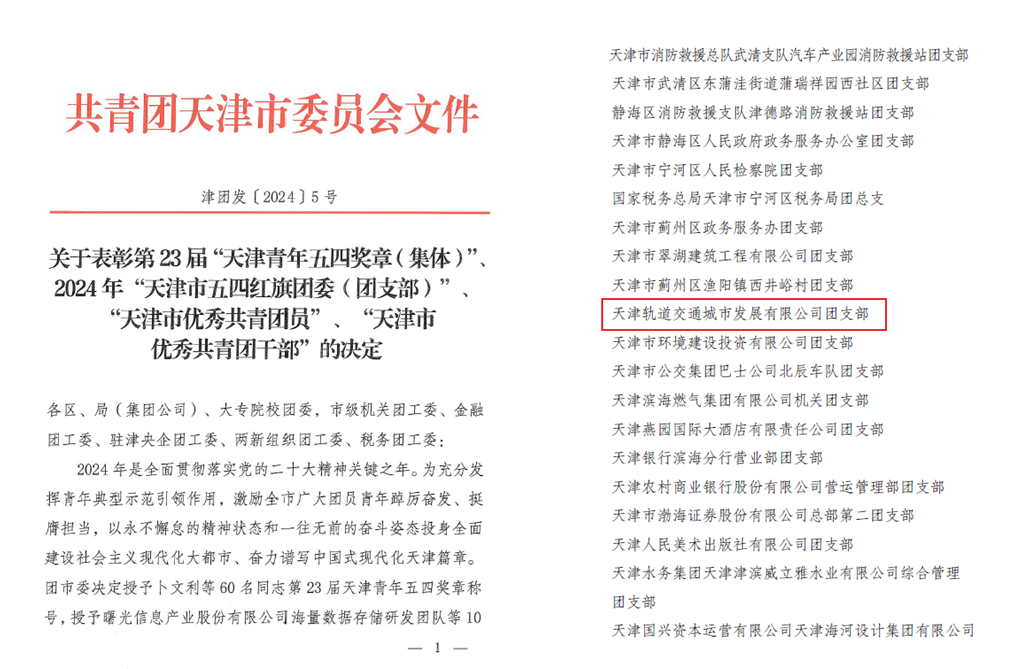 ?近日,共青團(tuán)天津市委作出表彰決定,天津中車機(jī)輛裝備有限公司集團(tuán)城市發(fā)展有限公司團(tuán)支部被授予“天津五四紅旗團(tuán)支部”稱號(hào)。