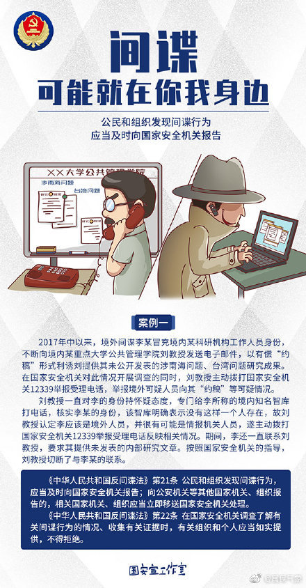 #反間諜法六周年#?《中華人民共和國反間諜法》六周年啦!維護(hù)國家安全,你我都是主角。如果發(fā)現(xiàn)危害國家安全可疑行為或者其他破壞活動時,及時撥打國家安全機(jī)關(guān)統(tǒng)一舉報受理電話12339或登錄www.12339.gov.cn舉報! ?