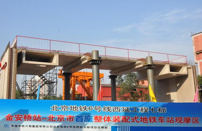 北京地鐵6號(hào)線金安橋站首次采用預(yù)制件現(xiàn)場(chǎng)拼裝的形式完成車站建設(shè),是北京市地鐵施工技術(shù)的一次飛躍。新技術(shù)極大程度地降低了傳統(tǒng)地鐵車站建設(shè)對(duì)勞動(dòng)力的依賴,極大減少施工現(xiàn)場(chǎng)的工作量,降低了施工現(xiàn)場(chǎng)周邊環(huán)境影響,且由于預(yù)制構(gòu)件的機(jī)械化生產(chǎn),顯著提高了整體施工質(zhì)量。