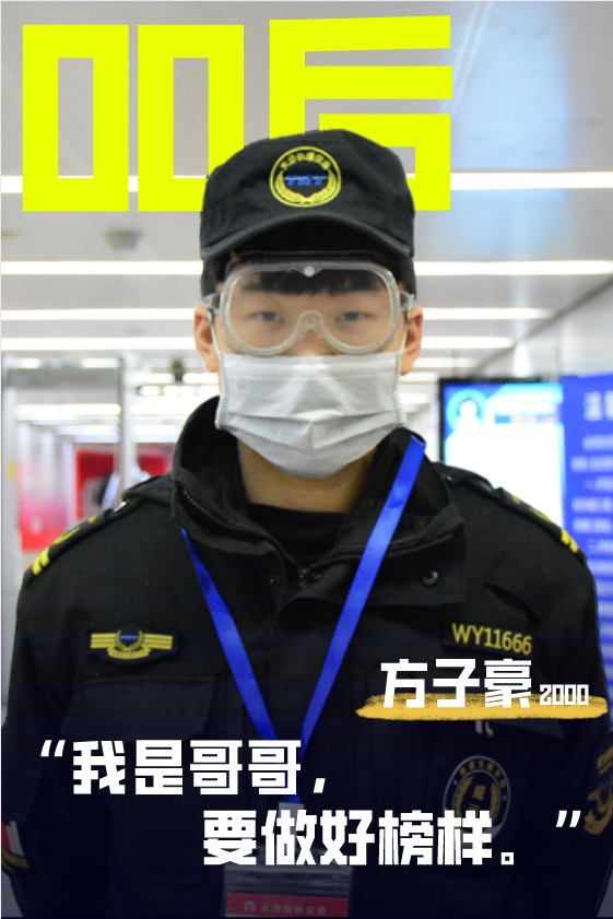 方子豪,男,2000年出生,地鐵2號線鼓樓站安檢小隊長。還不滿20歲的他,已經(jīng)是有著兩年工作經(jīng)歷的“老員工”了。老家河北省邯鄲市,近一年沒有回過家了。