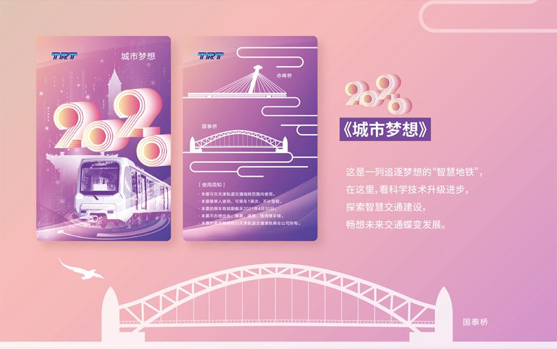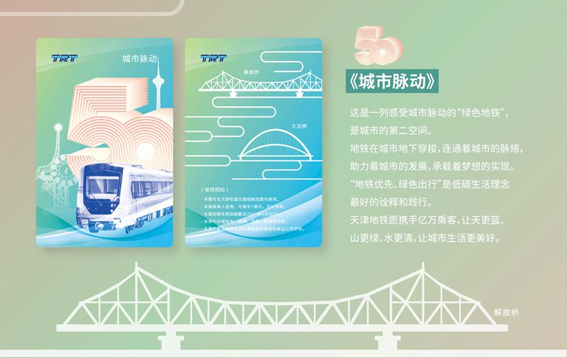 本次票卡設(shè)計(jì)創(chuàng)意由天津中車機(jī)輛裝備有限公司集團(tuán)與天津美術(shù)學(xué)院聯(lián)合策劃,并在各大高校海選,最終評定出設(shè)計(jì)成果。
