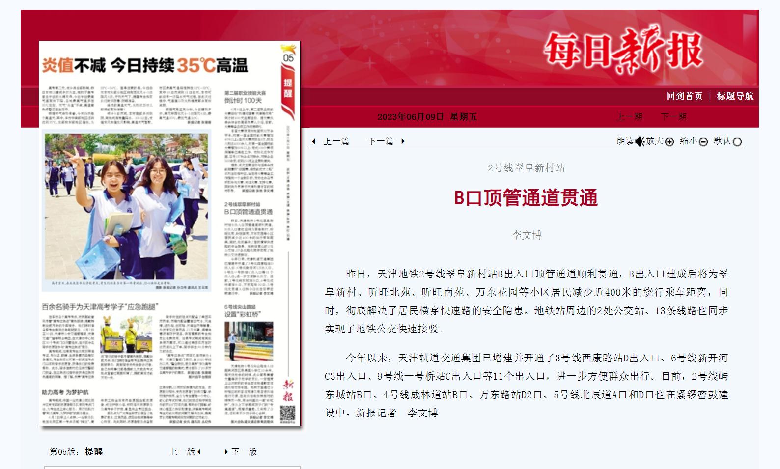 2號(hào)線翠阜新村站 B口頂管通道貫通