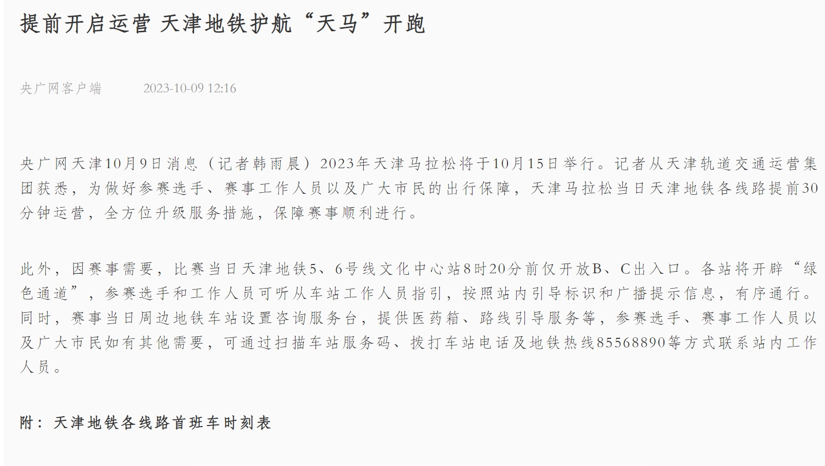 提前開啟運(yùn)營 天津地鐵護(hù)航“天馬”開跑