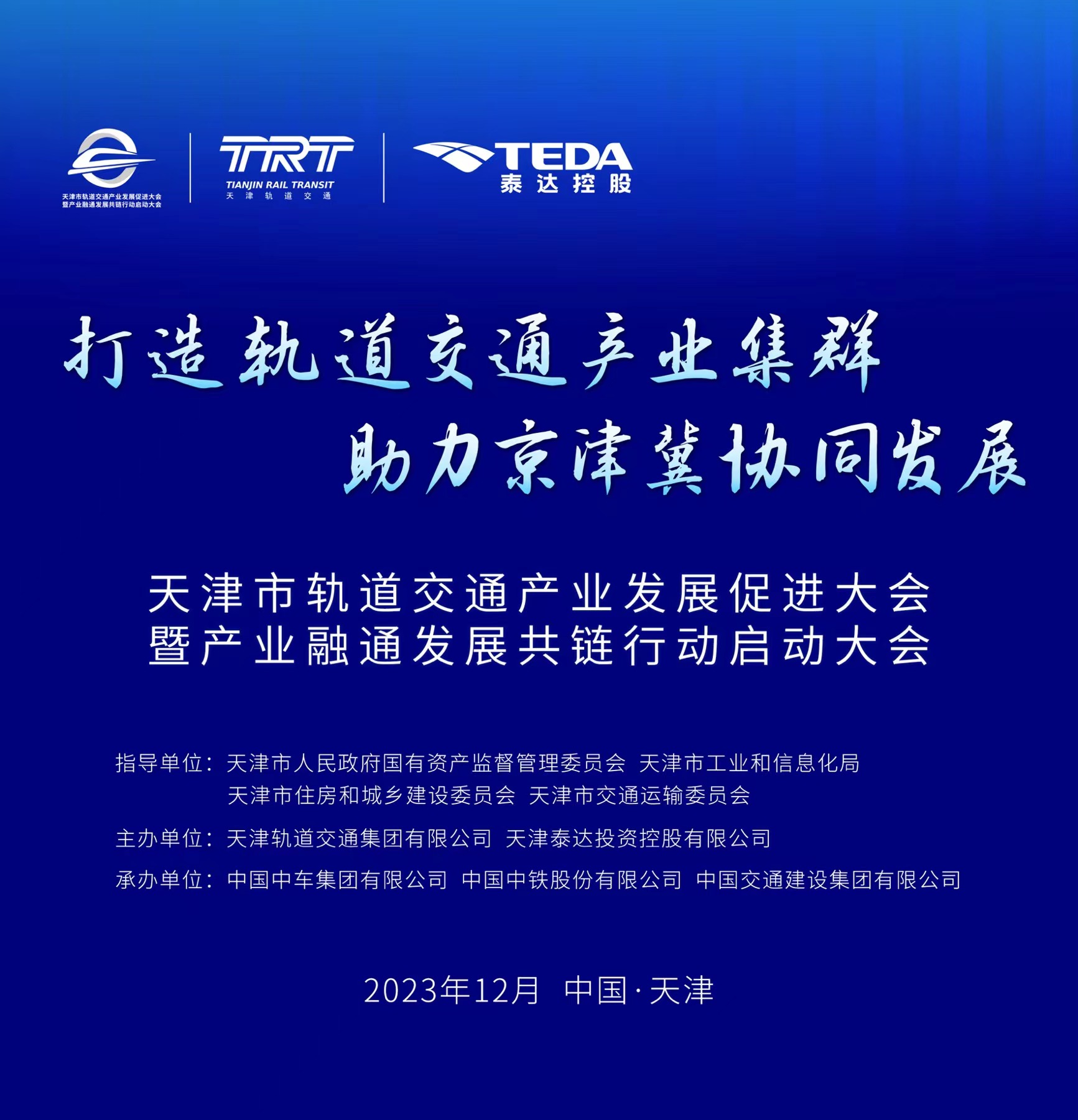 首屆天津市軌道交通產(chǎn)業(yè)發(fā)展促進(jìn)大會暨產(chǎn)業(yè)融通發(fā)展共鏈行動啟動大會將于12月8日在津舉行。