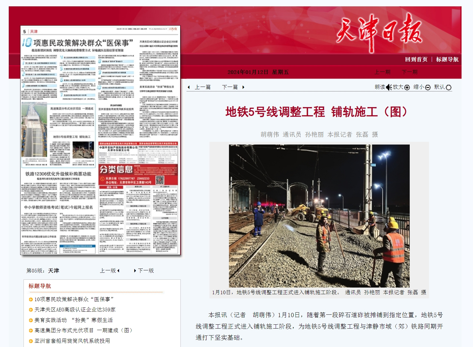 地鐵5號(hào)線調(diào)整工程 鋪軌施工