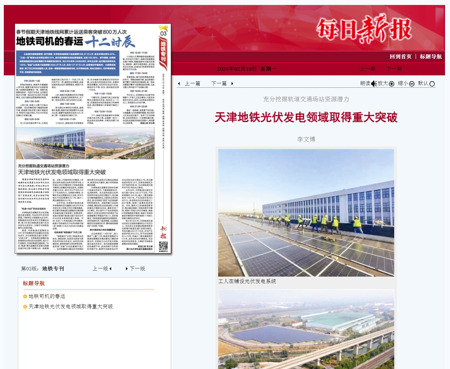 天津地鐵光伏發(fā)電領(lǐng)域取得重大突破