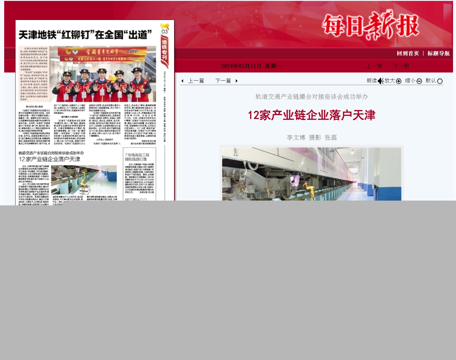 軌道交通產(chǎn)業(yè)鏈撮合對接座談會成功舉辦 12家產(chǎn)業(yè)鏈企業(yè)落戶天津