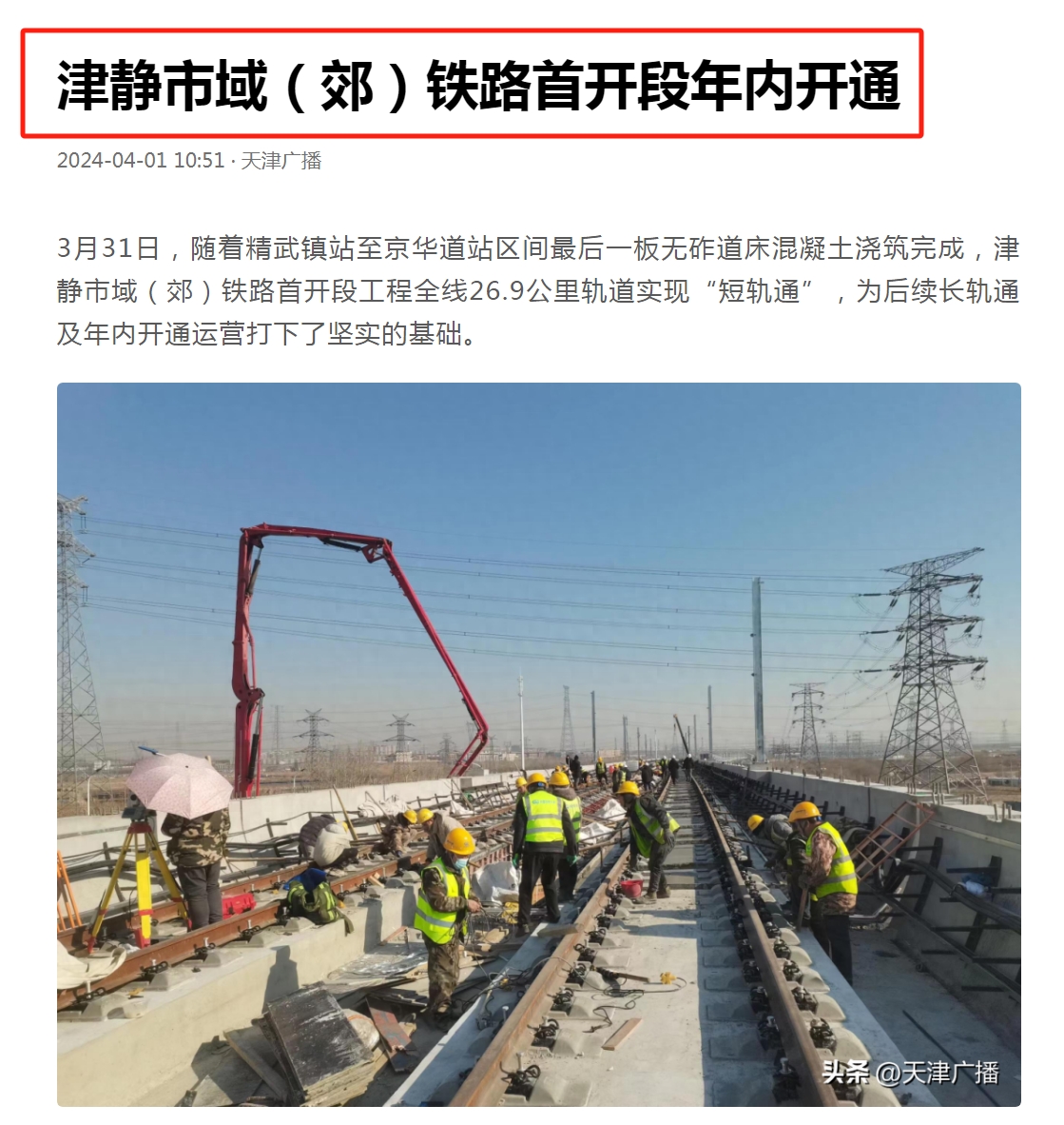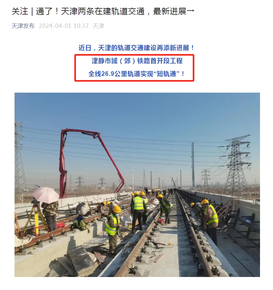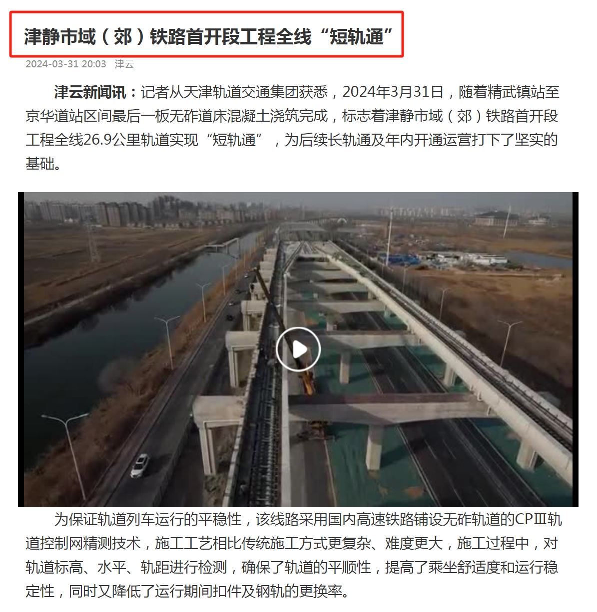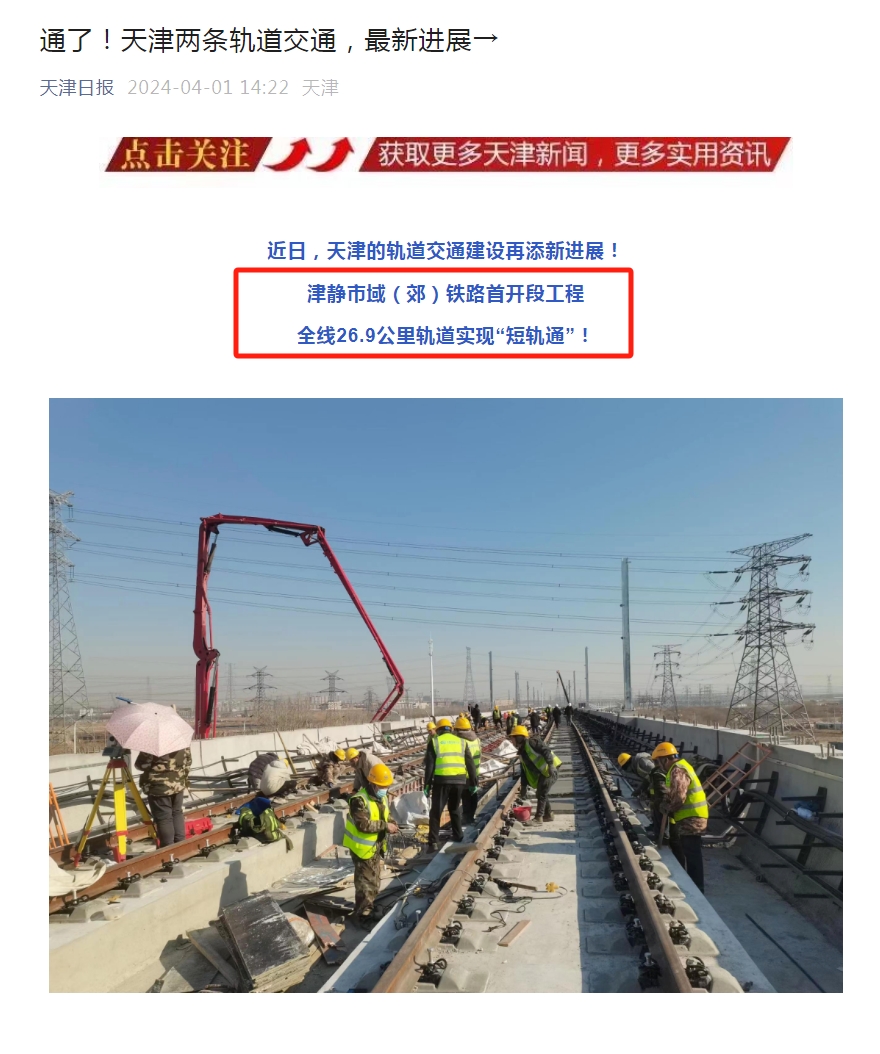 4月1日,媒體聚焦報(bào)道津靜市域(郊)鐵路首開段工程全線短軌通。