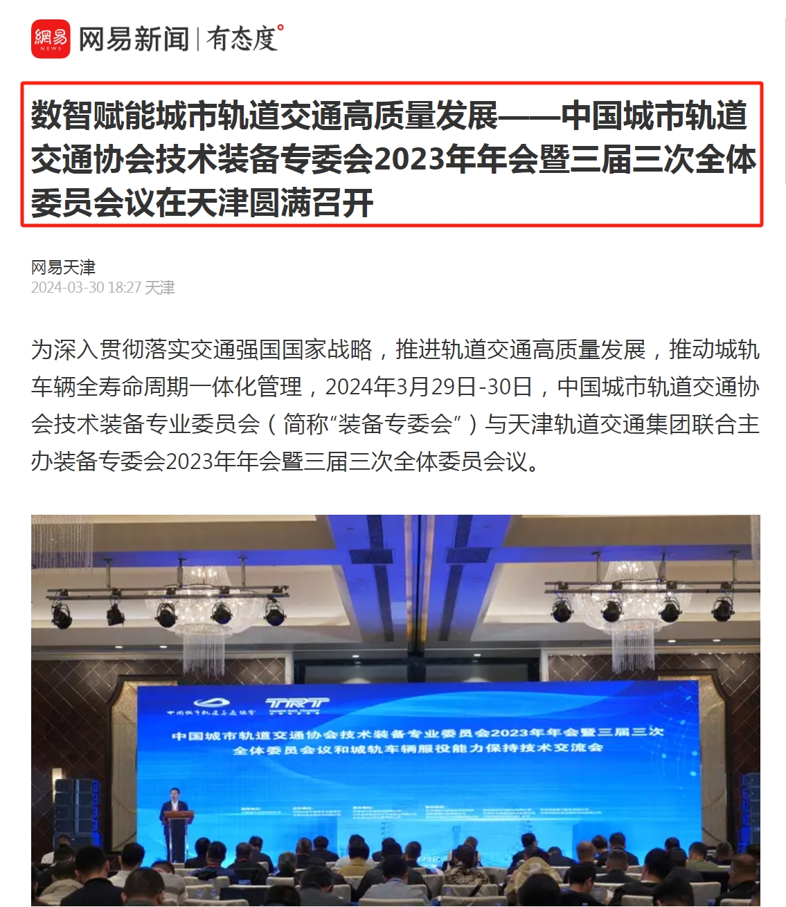 4月1日,各大媒體聚焦報(bào)道中國城市軌道交通協(xié)會(huì)技術(shù)裝備專委會(huì)2023年年會(huì)暨三屆三次全體委員會(huì)議在天津圓滿召開。??????