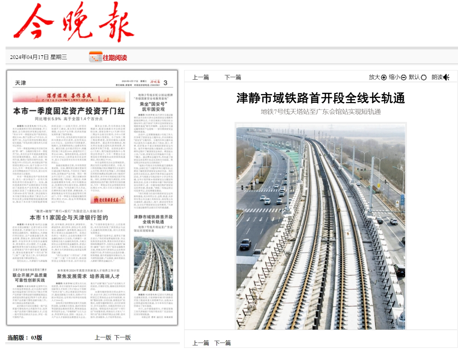津靜市域鐵路首開段全線長(zhǎng)軌通