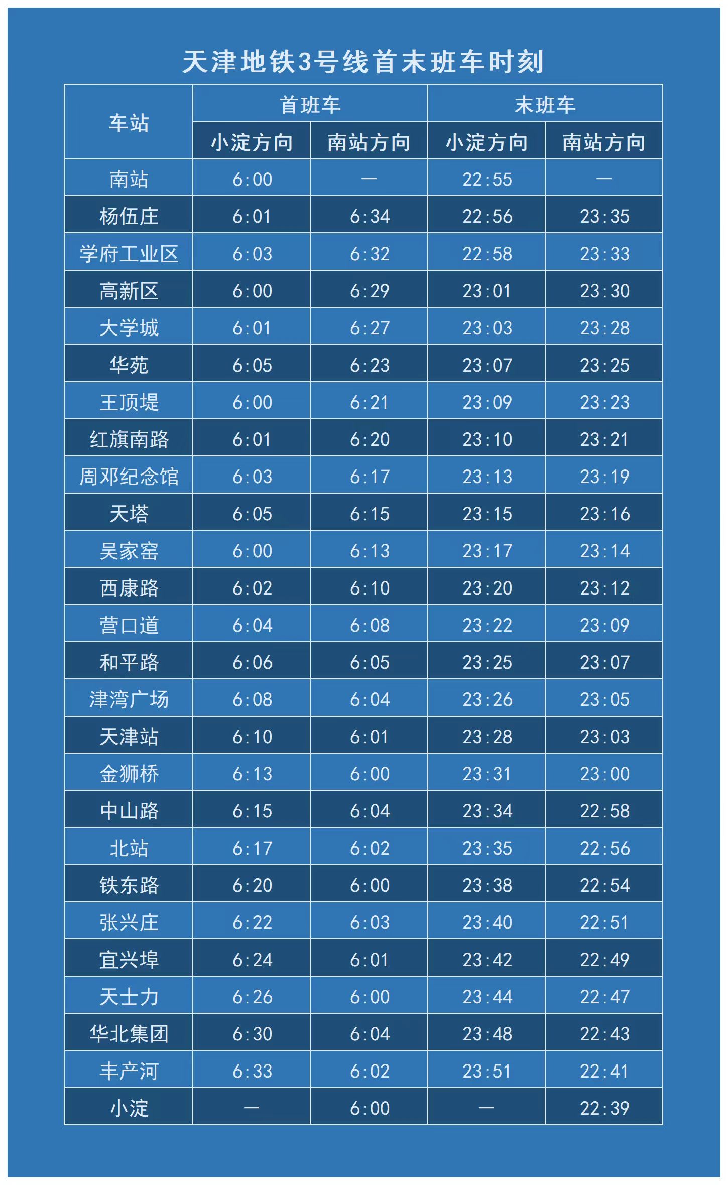 運(yùn)營(yíng)時(shí)刻表